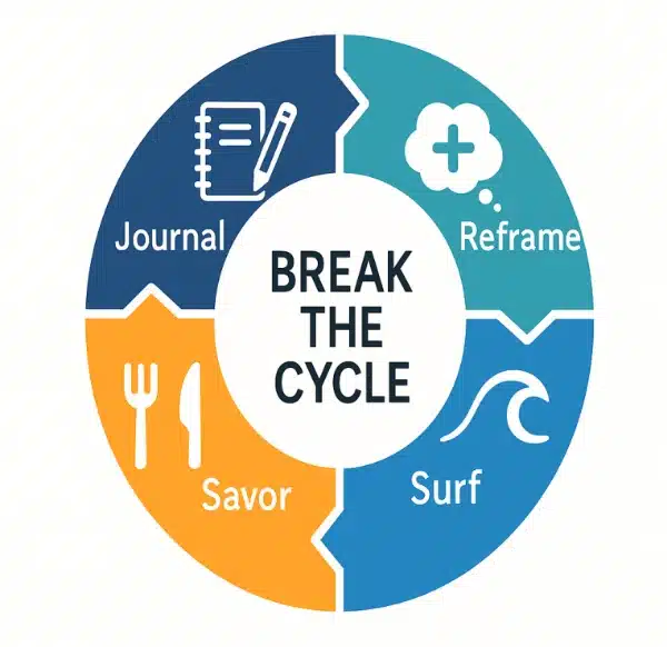 Combining cognitive-behavioral strategies with mindful eating practices empowers sustainable interruption of emotional eating cycles.